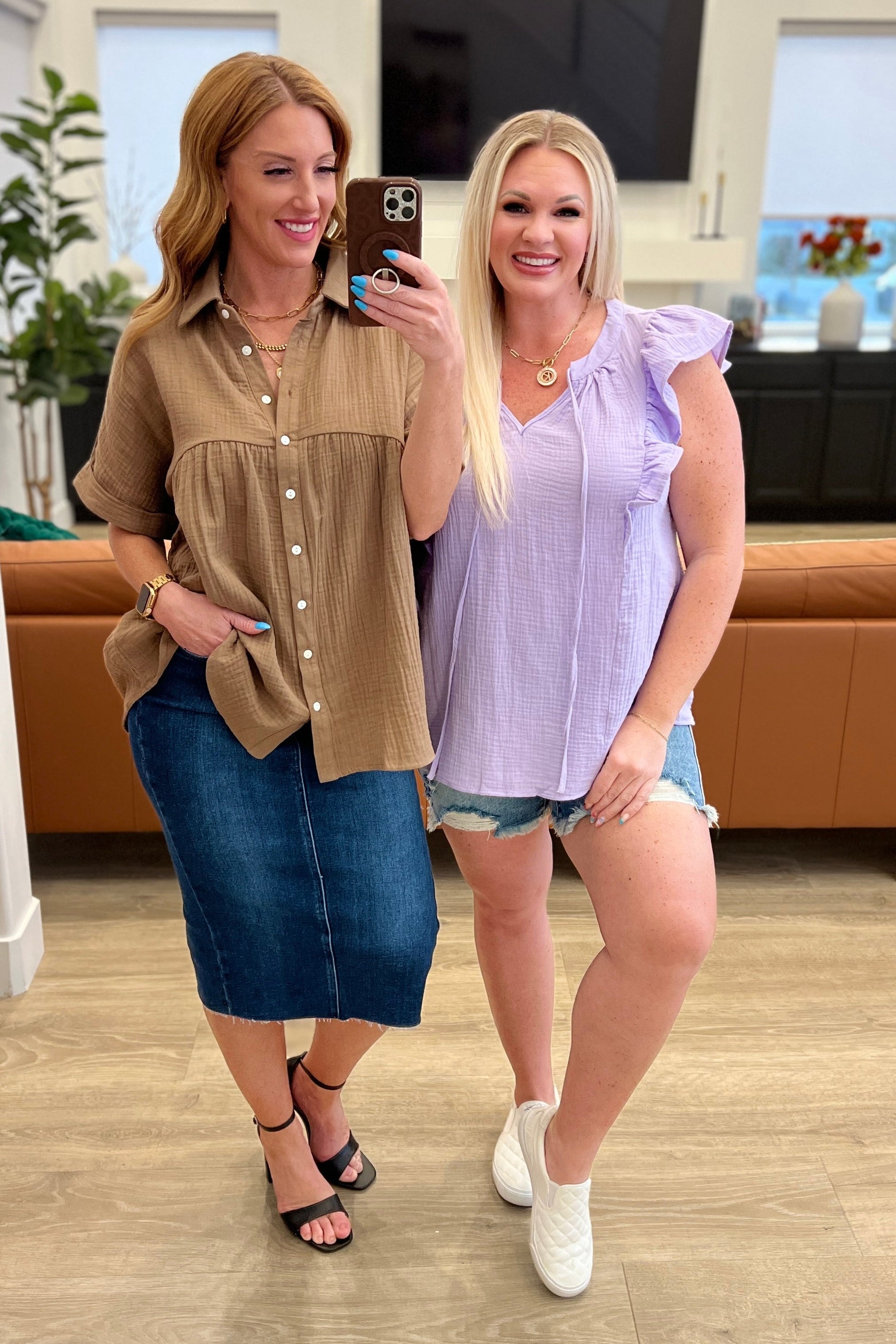 Stay cool and stylish in our Gauze Button Down Babydoll Blouse! Made with breathable and crinkle cotton, this blouse features functional front buttons, an empire gathered waist, and stitched cuffs for an oversized fit. Make a statement in black. Perfect for any occasion!