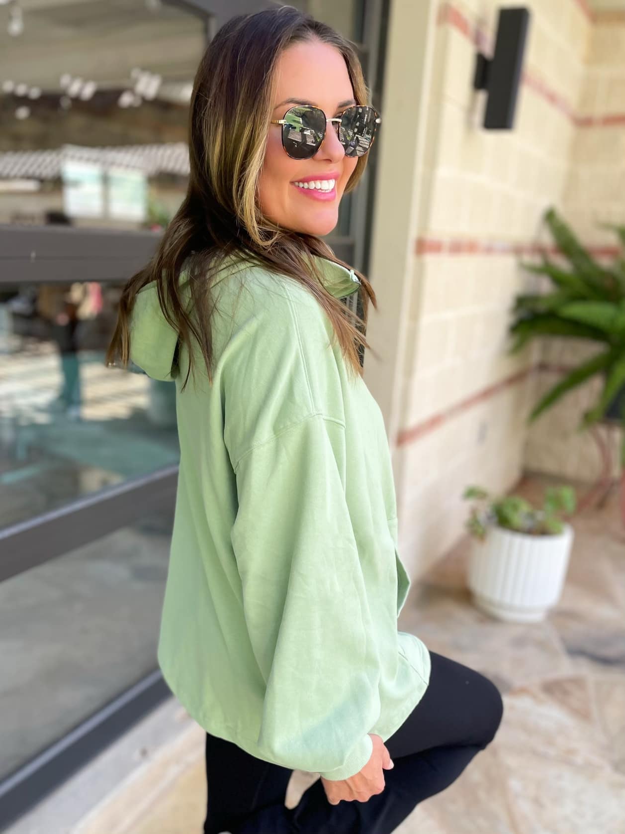 This oversized half zip hoodie will be on repeat all year long! The lighter weight makes it a versatile transition piece through any season and the relaxed fit keeps you feeling comfy with denim or leggings. Featuring a half zipper, kangaroo pocket, a drop shoulder design and oversized hood.