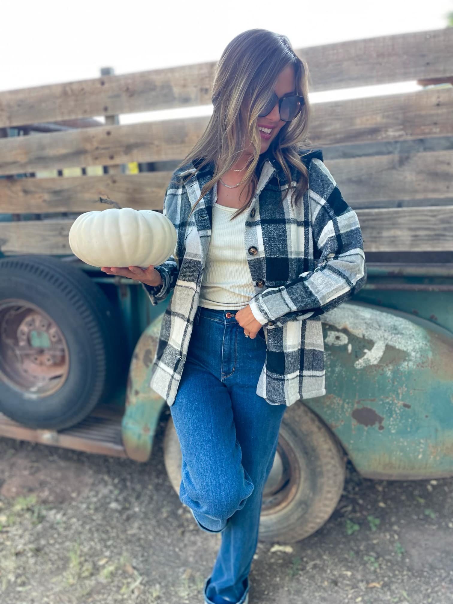 We guarantee this will become your new favorite shacket! It's soft with a perfectly relaxed fit, POCKETS, functional buttons and a detachable contrasting hood!. Available in two color combinations that just feel like fall.