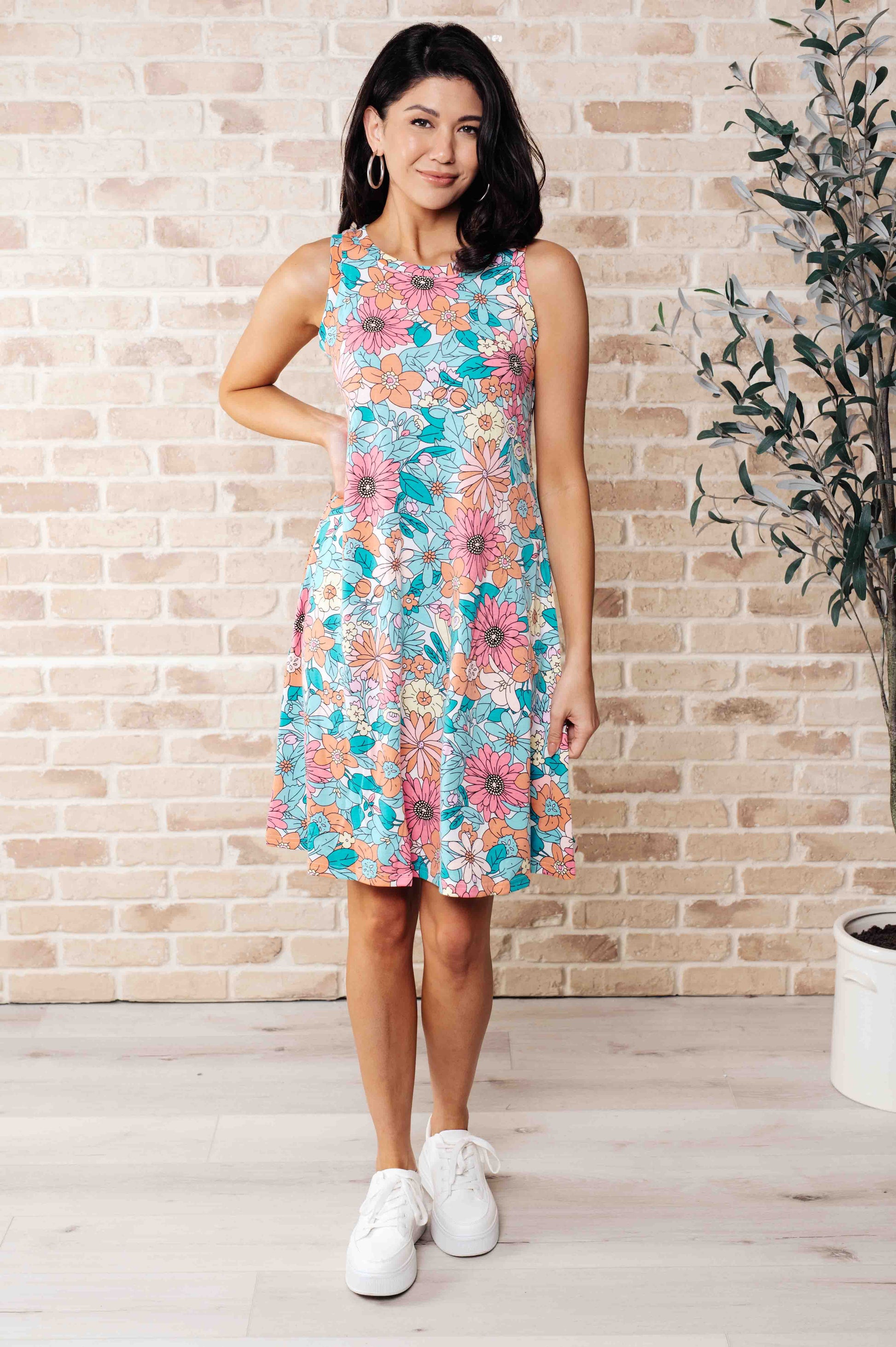 Summer Garden Sleeveless Swing Dress